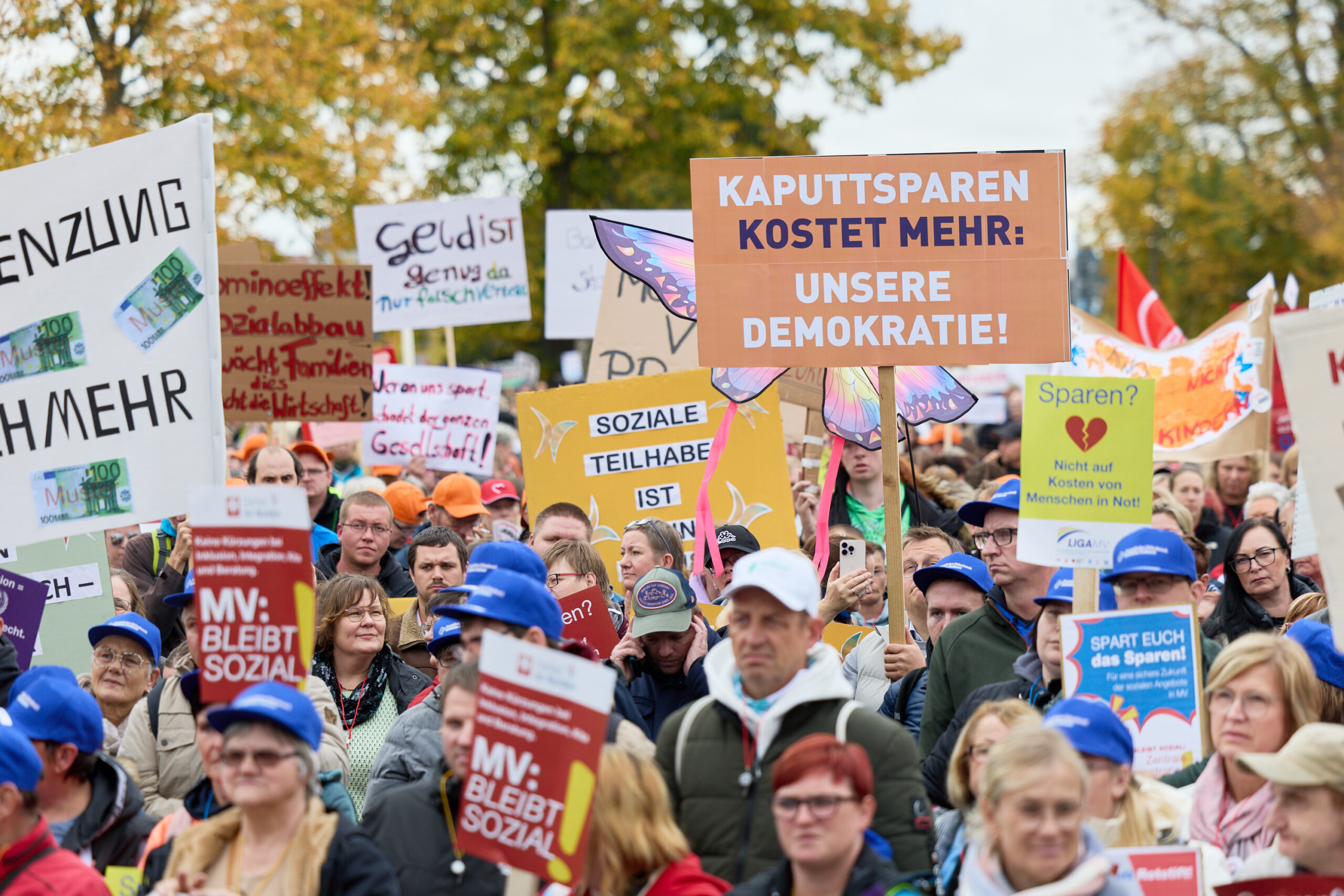 Gestern haben wir als Diakoniewerk Kloster Dobbertin gemeinsam mit mehr als 100 Kolleginnen und Kollegen aus unseren Einrichtungen, Kitas und Werkstätten an der Demonstration in Schwerin teilgenommen. Insgesamt versammelten sich rund 5.000 Menschen vor dem Landtag, um ein deutliches Zeichen für den Erhalt und die verlässliche Finanzierung sozialer Arbeit zu setzen.